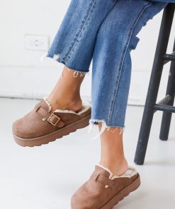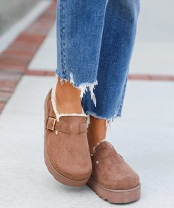 Give sweater weather OOTDs a style update with the Fuzzy Feelings Taupe Fur Lined Platform Slip-On Clogs! These trendy slip-on clogs are designed with a vegan suede with a faux fur lining. They have a rounded toe and a functional buckle across the top with a platform. Style the Fuzzy Feelings Taupe Fur Lined Platform Slip-On Clogs with denim and a sweater for a cozy look! Faux Suede Faux Fur Lining Rounded Toe Functional Adjustable Buckle Platform Runs Small, We Recommend Sizing UpPlatform Height 1″ | Sole Width 3″